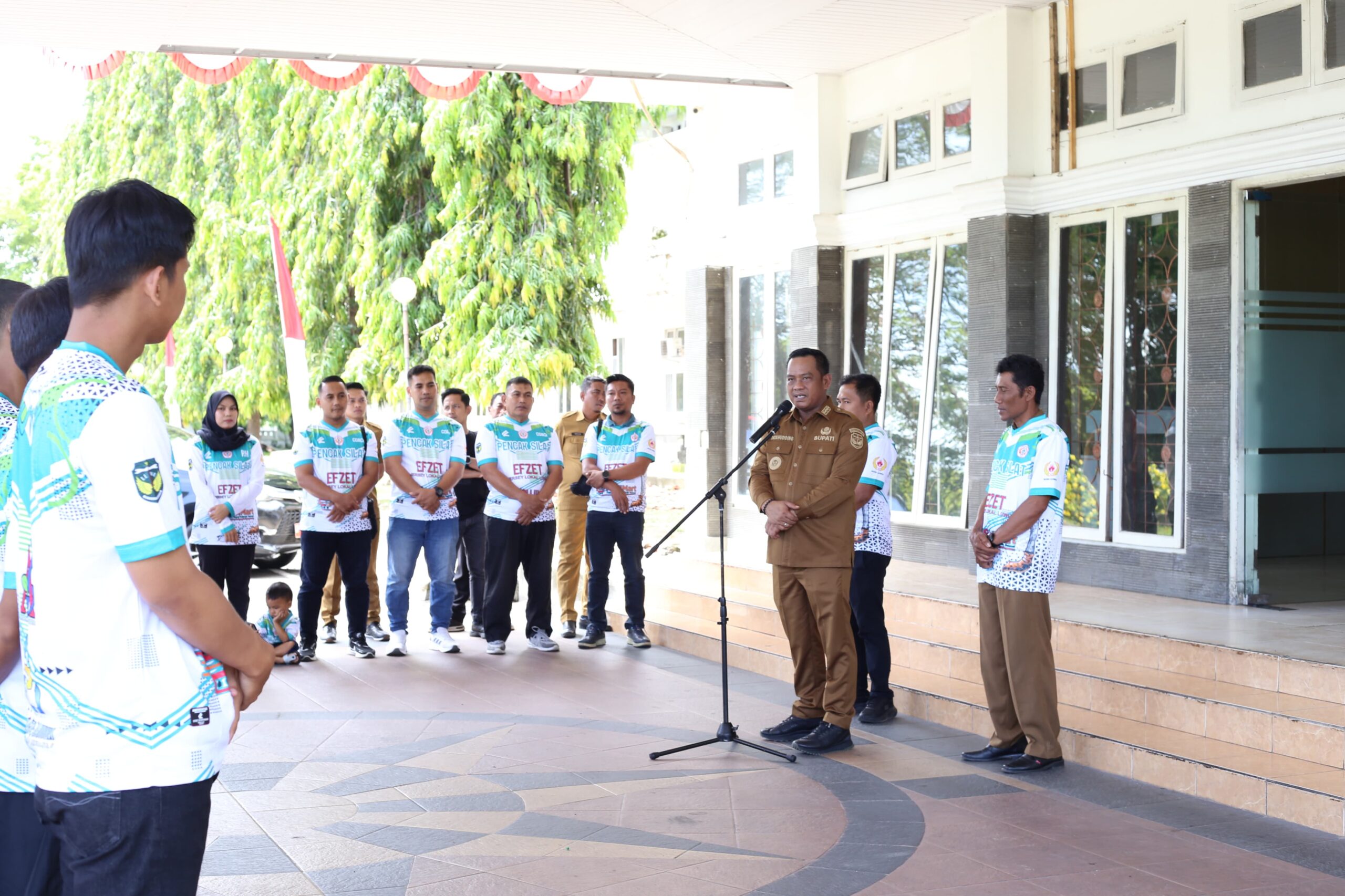 Pelepasan atlet berlangsung di Halaman Kantor Bupati Luwu, Kelurahan Senga, Belopa, Senin (27/10/2025).