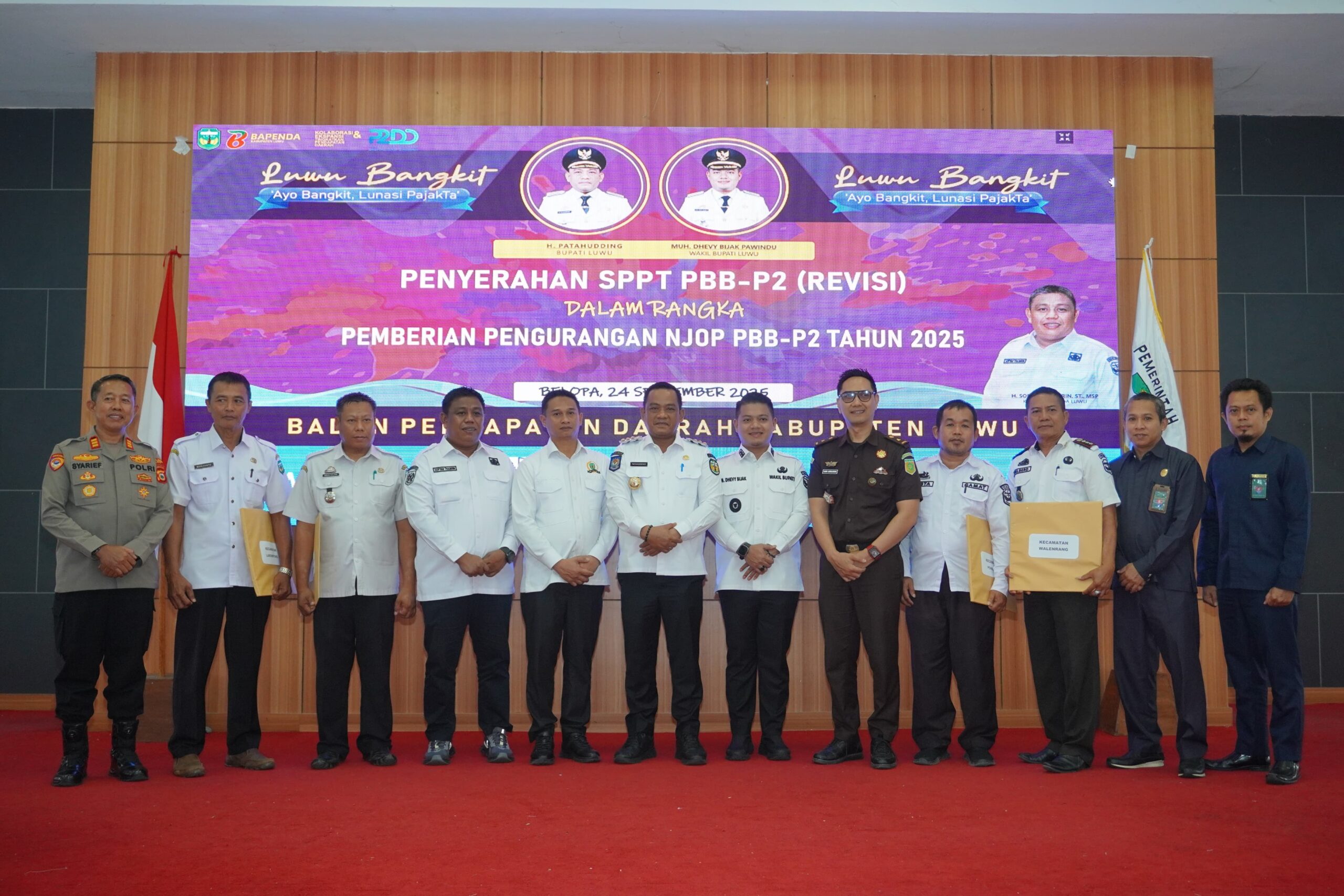 GEMAERA.ID, Luwu – Bupati Luwu, Patahudding, menyerahkan Surat Pemberitahuan Pajak Terutang (SPPT) Pajak Bumi dan Bangunan Perdesaan dan Perkotaan (PBB-P2) revisi hasil pengurangan Nilai Jual Objek Pajak (NJOP) tahun 2025, sekaligus menghapuskan denda sanksi administrasi PBB-P2.