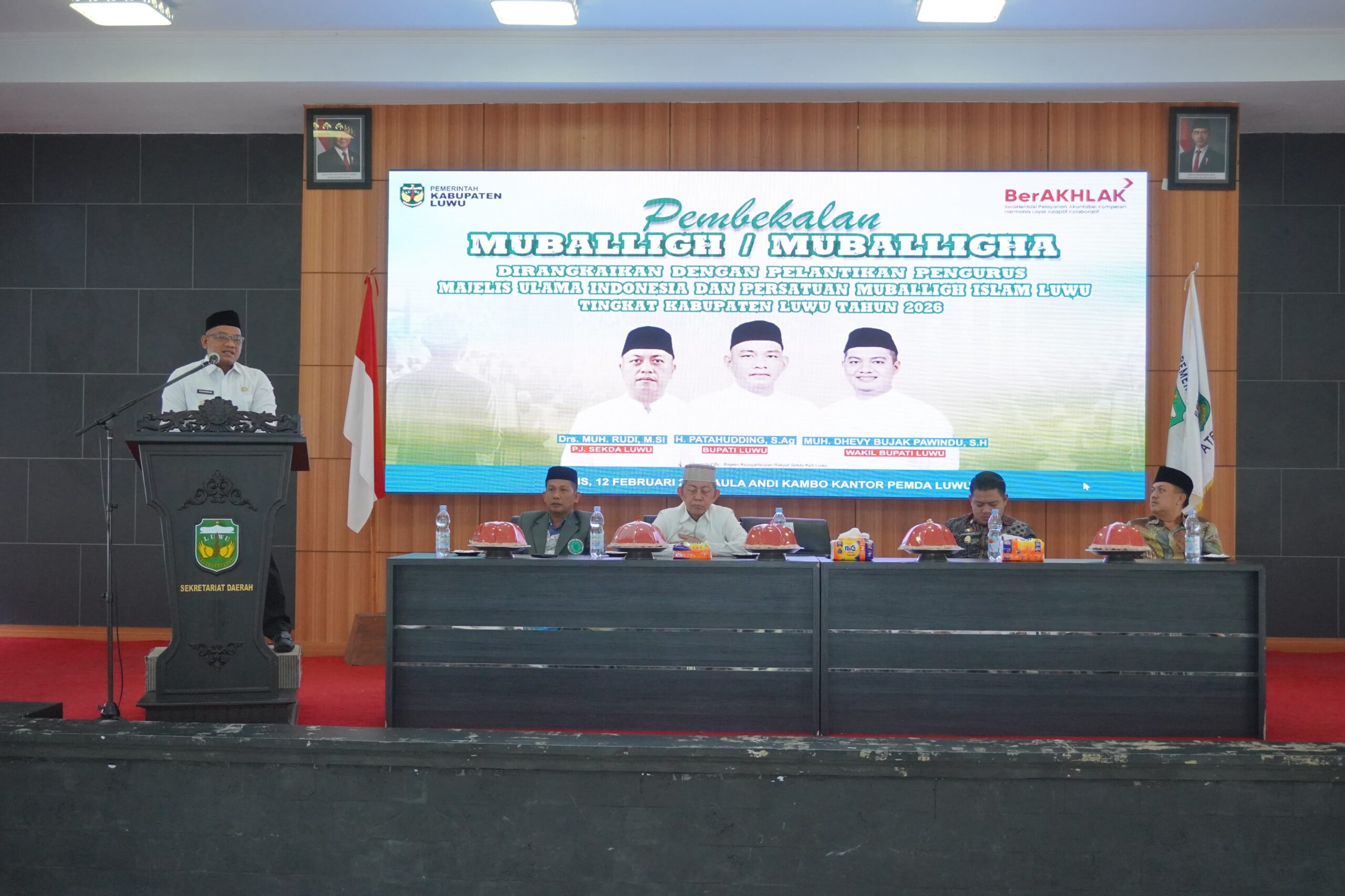 GEMAERA.ID, Luwu – Pemerintah Kabupaten Luwu menghadiri kegiatan Pembekalan Muballigh/Muballigha yang dirangkaikan dengan Pelantikan Pengurus Majelis Ulama Indonesia (MUI) dan Persatuan Muballigh Islam Luwu (Persamil) tingkat Kabupaten Luwu. Kegiatan tersebut dihadiri Bupati Luwu, Patahudding, Wakil Bupati Luwu, Muh. Dhevy Bijak Pawindu, serta Penjabat Sekretaris Daerah Luwu, Muh. Rudi, di Aula Andi Kambo, Kompleks Perkantoran Bupati Luwu, Kamis (12/2/2026).