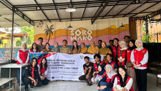 GEMAERA.ID, Luwu Timur – Mahasiswa Universitas Hasanuddin (Unhas) yang tergabung dalam KKN Tematik Pariwisata Gelombang 114 resmi menggelar seminar program kerja di Aula BPD Desa Sorowako, Kecamatan Nuha, Kabupaten Luwu Timur, Selasa (29/7/2025). Seminar ini dihadiri oleh pemerintah desa, tokoh masyarakat, serta perwakilan warga setempat. Dalam pemaparannya, mahasiswa menyampaikan berbagai program yang dirancang untuk mendorong […]