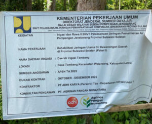 GEMAERA.ID, Luwu – Proyek rehabilitasi jaringan irigasi Daerah Irigasi (DI) Tombang di Desa Tombang, Kecamatan Walenrang, Kabupaten Luwu, Sulawesi Selatan, yang sebelumnya disorot warga karena belum mengalirkan air ke sawah, kini mendapat klarifikasi dari pihak pelaksana dan pemerintah desa.