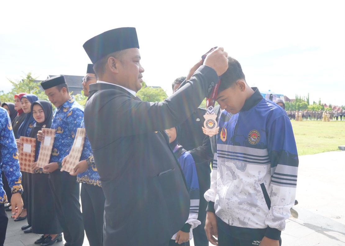 Selain itu, Bupati Luwu juga menyerahkan sertifikat penghargaan kepada pelajar berprestasi yang telah mengharumkan nama daerah pada ajang Open Tournament UNHAS Cup Tingkat Nasional Tahun 2025, yaitu: