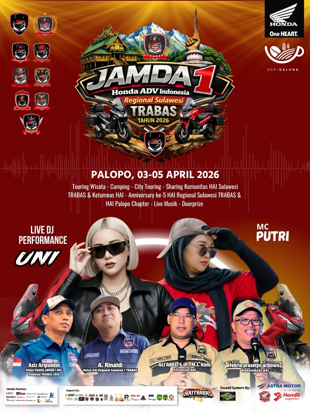Kegiatan ini turut mendapat dukungan dari Astra Honda Motor, Honda Community, Kopi Galung, DSO Djarum Palopo, Pengurus Nasional HAI, PT BMS, serta sejumlah mitra pendukung lainnya.